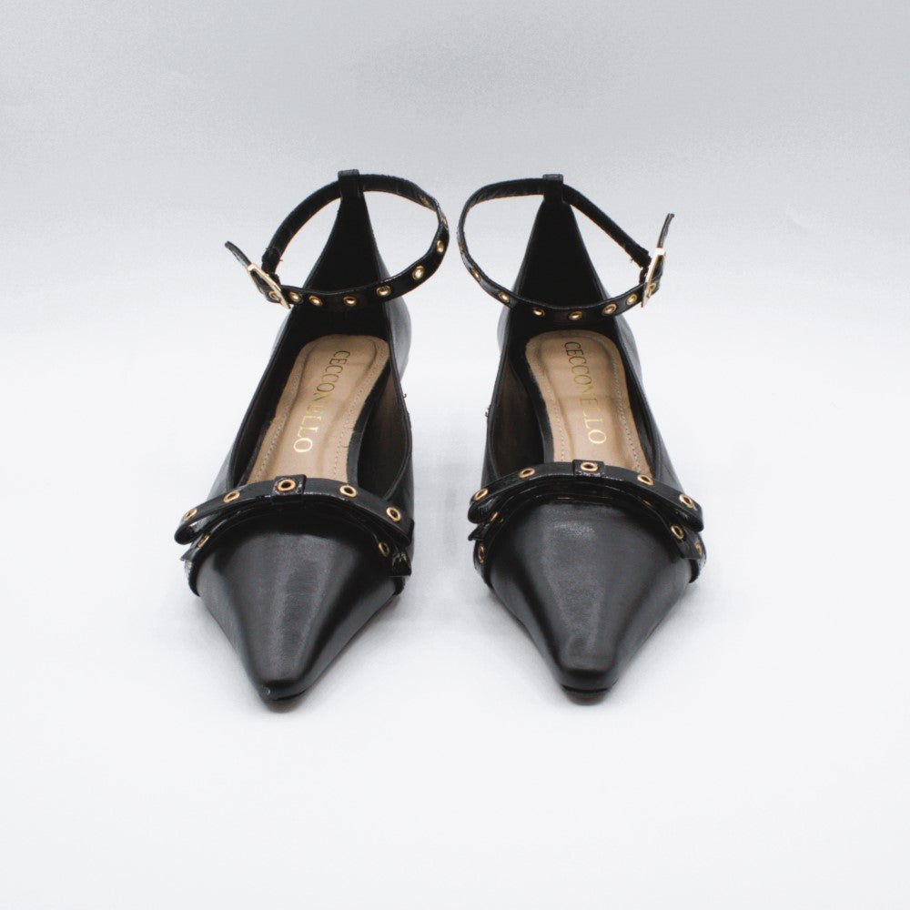 Cecconello decolletè fiocco borchie oro